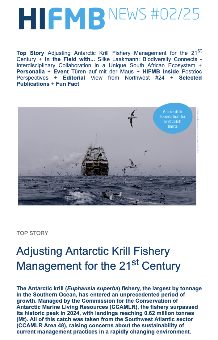 Top Story Adjusting Antarctic Krill Fishery Management for the 21st Century (Bettina Meyer)